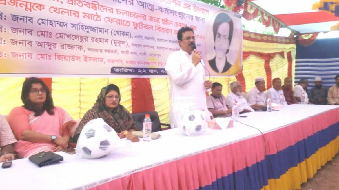 এম চোখ ডটকম,গাংনী : মেহেরপুরের গাংনীতে অসহায়, দুস্থ, অসচ্ছল মহিলাদের মাঝে মাঝে সেলাই মেশিন, প্রতিবন্ধীদের মাঝে হুইলচেয়ার এবং কিশোরদের মাঝে ফুটবল বিতরণ করা হয়েছে।