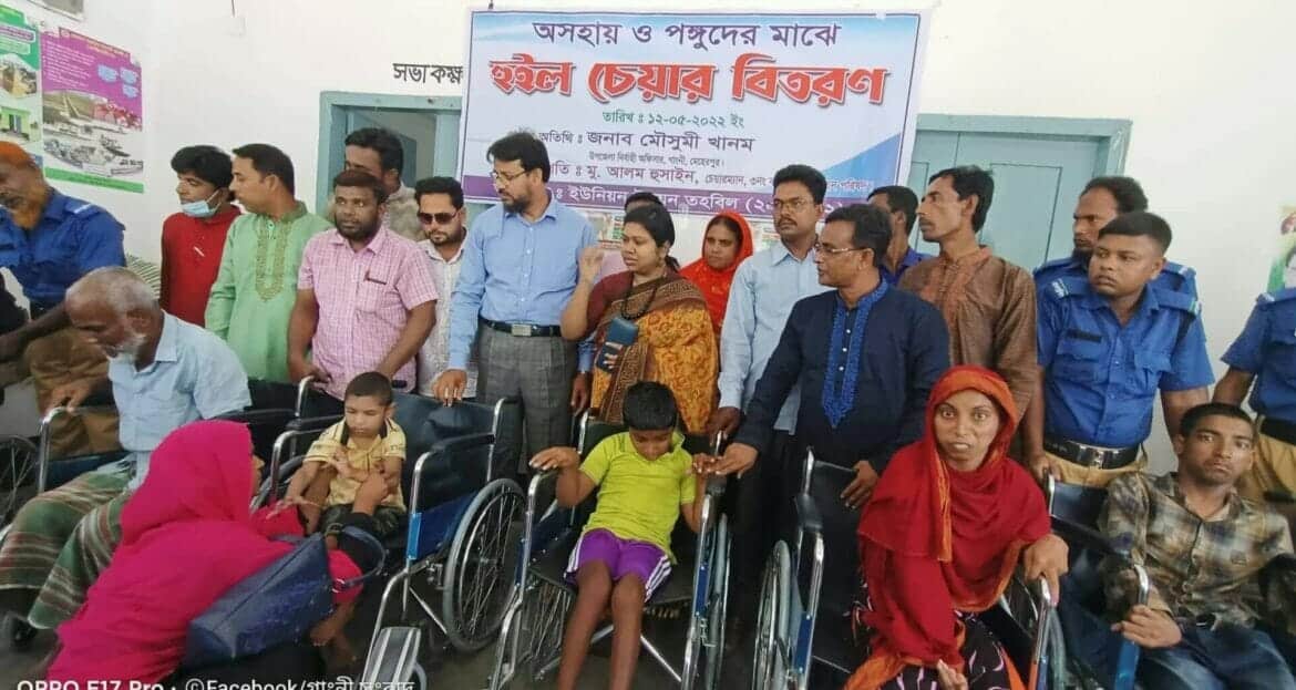 গাংনীতে অসহায় ও পঙ্গুদের মাঝে হুইলচেয়ার বিতরণ