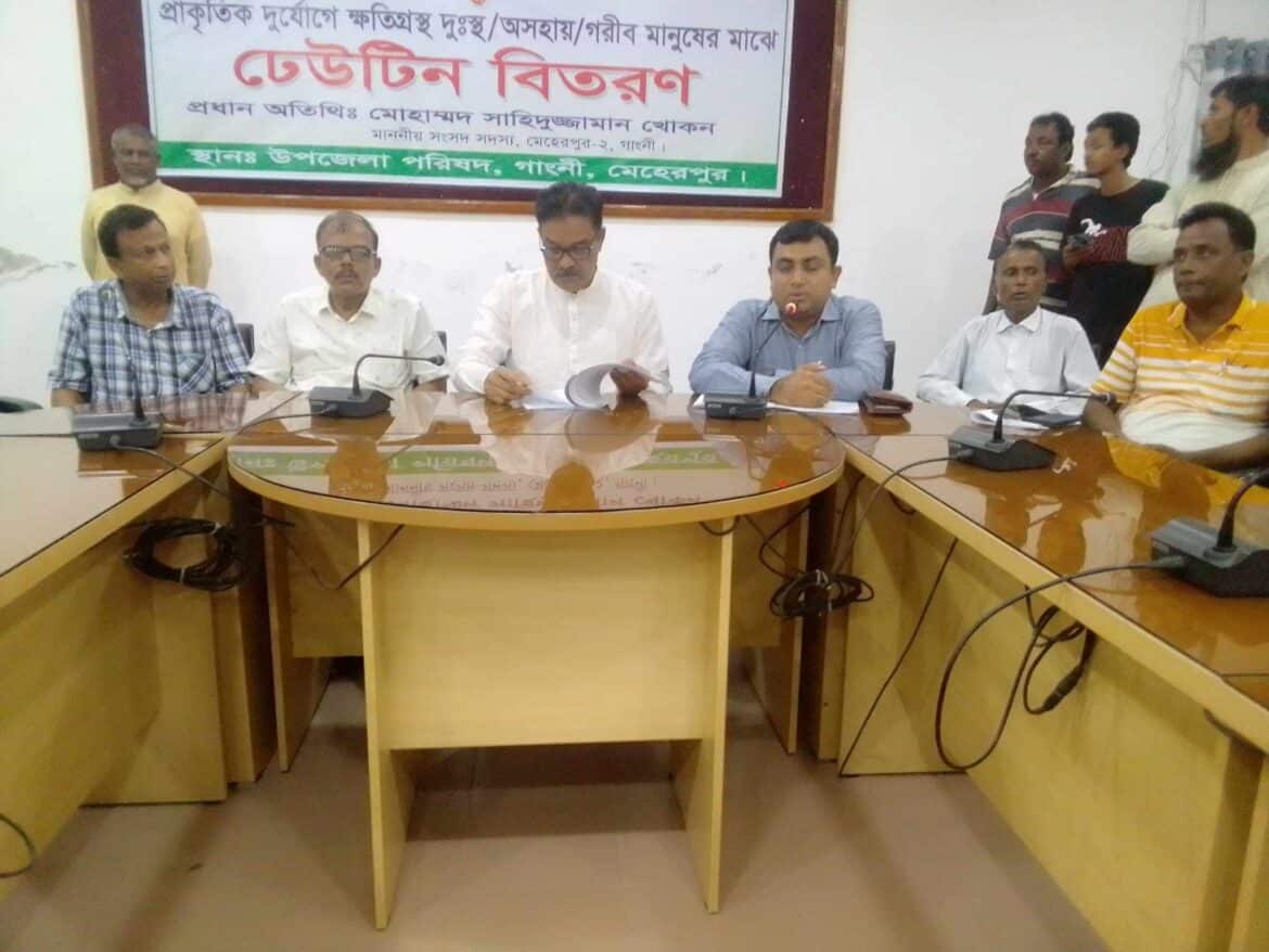 গাংনীতে ক্ষতিগ্রস্ত মানুষের মাঝে নগদ অর্থ ও ঢেউটিন বিতরণ
