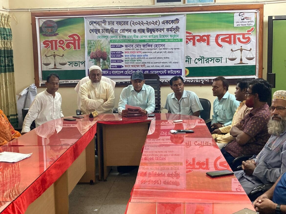 গাংনী পৌরসভার প্যানেল মেয়র আছেল উদ্দেনের সভাপতিত্বে বিশেষ অতিথি ছিলেন গাংনী প্রেসক্লাবের সাধারণ সম্পাদক মাহাবুব আলম ও বাংলাদেশ হেরিটেজ স্টাডি এন্ড ডেভেলপমেন্ট ফাউন্ডেশনের ঝিনাইদহ জেলার সভাপতি হাবিবুর রহমান হাবিব। শুভেচ্ছা বক্তব্য রাখেন, বাংলাদেশ হেরিটেজ স্টাডি এন্ড ডেভেলপমেন্ট ফাউন্ডেশন গাংনী উপজেলার সাধারন সম্পাদক মহিবুল আলম। অতিথিরা খেজুর গাছের উপকারিতা এর ভবিষ্যত উন্নয়নের বিষয় তুলে ধরে বক্তব্য রাখেন।