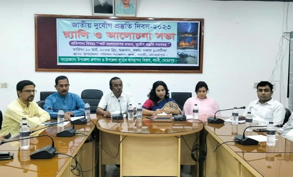 গাংনী উপজেলা নির্বাহী অফিসার (ভারপ্রাপ্ত) রনী খাতুনের সভাপতিত্বে প্রধান অতিথি হিসেবে উপস্থিত ছিলেন উপজেলা পরিষদ চেয়ারম্যান (ভারপ্রাপ্ত) ফারহানা ইয়াসমিন। স্বাগত বক্তব্য রাখেন উপজেলা প্রকল্প বাস্তবায়ন কর্মকর্তা (পিআইও) নিরঞ্জন চক্রবর্তী। বামন্দি ফায়ার সার্ভিস অ্যান্ড সিভিল ডিফেন্সের স্টেশন অফিসার ইসাহক আলী, গাংনী প্রেসক্লাব সভাপতি তৌহিদ উদ দৌলা রেজ, আওয়ামী লীগ নেতা মনিরুজ্জামান আতু। এসময় সরকারী বিভিন্ন দপ্তরের কর্মকর্তা কর্মচারীবৃন্দ উপস্থিত ছিলেন।