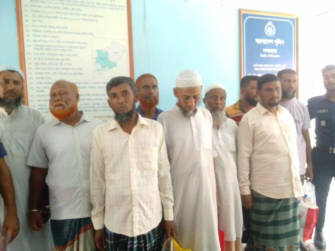 আটককৃতরা হলেন-গাংনী উপজোর গোপাল নগর গ্রামের নুরুল ইসলামের ছেলে আনোয়ার হোসেন(৪৩),শিশিরপাড়া গ্রামের মৃত আকছাদ আলীর ছেলে আব্দুস সাত্তার(৬০),জুগিন্দা গ্রামের মোবারক হোসেনের ছেলে গোলাম মাস্তফা(৪০),ব্রজপুর গ্রামের মৃত হাউসের ছেলে জাকারিয়া(৪০),বাঁশবাড়িয়া গ্রামের আবু বক্করের ছেলে সোহেল রানা(৪০),শানঘাট গ্রামের মৃত তোয়াজ মন্ডলের ছেলে আকছেদ আলী(৬৫),ধনখোলা গ্রামের মৃত আশমত আলীর ছেলে জামাল হোসেন(৬৩), রইচ উদ্দীনের ছেলে আব্দুল হান্নান(৬০) রাজাপুর গ্রামের মৃত ওমর উল্লার ছেলে আব্দুল ওয়াদুদ(৫৫) এবং তেঁতুলবাড়িয়া গ্রামের শিরাজুল ইসলামের ছেলে মনিরুল ইসলাম(৪৫)।