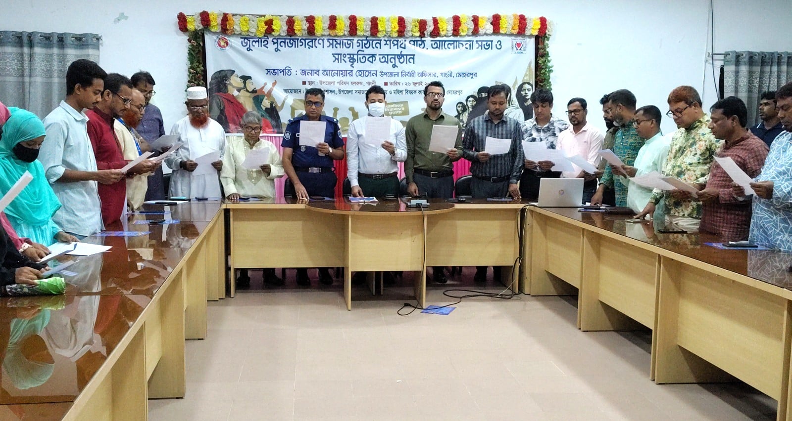 উপজেলা নির্বাহী অফিসার আনোয়ার হোসেনের সভাপতিত্বে অনুষ্ঠানে উপস্থিত ছিলেন সহকারী কমিশনার (ভূমি) সাদ্দাম হোসেন, গাংনী থানা অফিসার ইনচার্জ (ওসি) বানী ইসরাইল, সাবেক মুক্তিযোদ্ধা কমান্ডার শামসুল আলম (সোনা), সমাজসেবা কর্মকর্তা আরশেদ আলী, উপজেলা কৃষি কর্মকর্তা ইমরান হোসেন, কাজীপুর ইউপি চেয়ারম্যান আলম হুসাইন, স্থানীয় সাংবাদিক, রাজনীতিক, শিক্ষার্থী ও বিভিন্ন শ্রেণি-পেশার মানুষ।