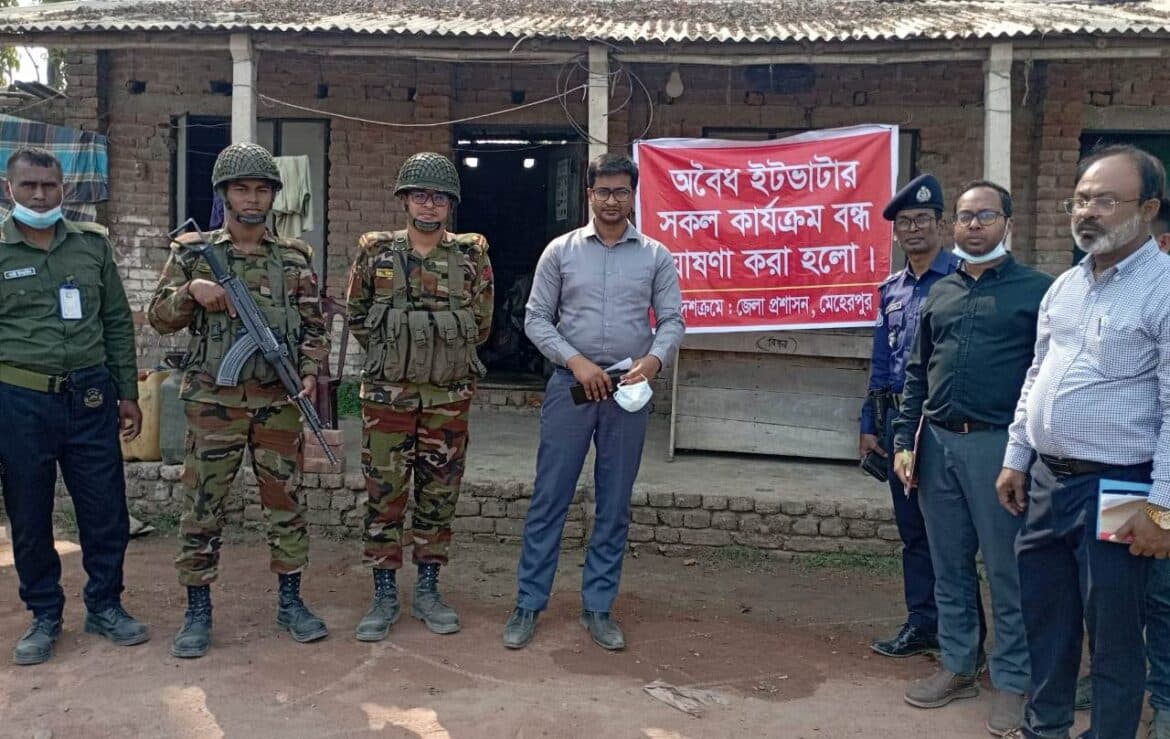 ভ্রাম্যমান আদালত সুত্র জানায়, পরিবেশ অধিদপ্তরের ছাড়পত্র ছাড়াই মেহেরপুরের গাংনীতে অবৈধভাবে ইটভাটা স্থাপন করে ইট প্রস্তুত ও বিক্রি করা হচ্ছে। অবৈধ এসব ইটভাটার বিরুদ্ধে জেলা প্রশাসনের অভিযানের অংশ হিসেবে অভিযান শুরু হয়। সরকারী আদেশ অমান্য করায় ভাটপাড়ার রিপন ব্রিকস থেকে দুই লাখ টাকা, কসবা হিরা ব্রিকস থেকে দুই লাখ টাকা ও মহিষাখোলা টু স্টার ব্রিকস থেকে দুই লাখ টাকা জরিমানা আদায় করা হয়।