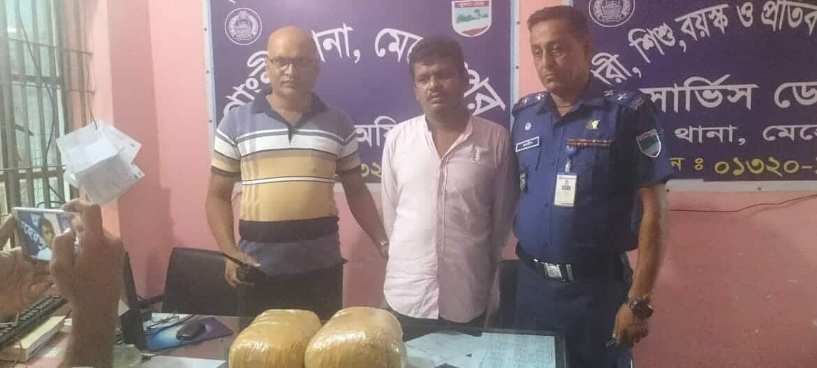 এম চোখ ডটকম,গাংরী: গাংনীতে ৫ কেজি গাঁজাসহ সোহরাব হোসেন(৩৮) নামের এক মাদক পাচারকারীকে আটক করেছে পুলিশ। শুক্রবার (৯ সেপ্টেম্বর) দুপুরে তাকে আটক করে। আটককৃত সোহরাব হোসেন মুন্সিগঞ্জ জেলার মাওয়া বিক্রমপুর গ্রামের গোলাম মোস্তফার ছেলে ও গাংনী উপজেলার রামনগর গ্রামের সাজিপাড়ার মৃত ফজলুল হকের জামাতা। গাংনী থানার ওসি আব্দুর রাজ্জাক জানান, উপজেলার হাড়াভাঙ্গা তাগাদগির পাড়া দিয়ে মাদক পাচার হচ্ছে এমন গোপন সংবাদের ভিত্তিতে ভবানীপুর ক্যাম্প ইনচার্জ এস আই জহির রায়হান সঙ্গীয় ফোর্স অভিযান চালিয়ে ৫ কেজি গাজা সোহরাব হোসেনকে আটক করে। মাদক পাচারের কাজে ব্যবহৃত একটি মোটরসাইকেল জব্দ করে পুলিশ।সোহরাব হোসেনের বিরুদ্ধে ইতিপূর্বে আরো ৫টি মাদক মামলা রয়েছে।