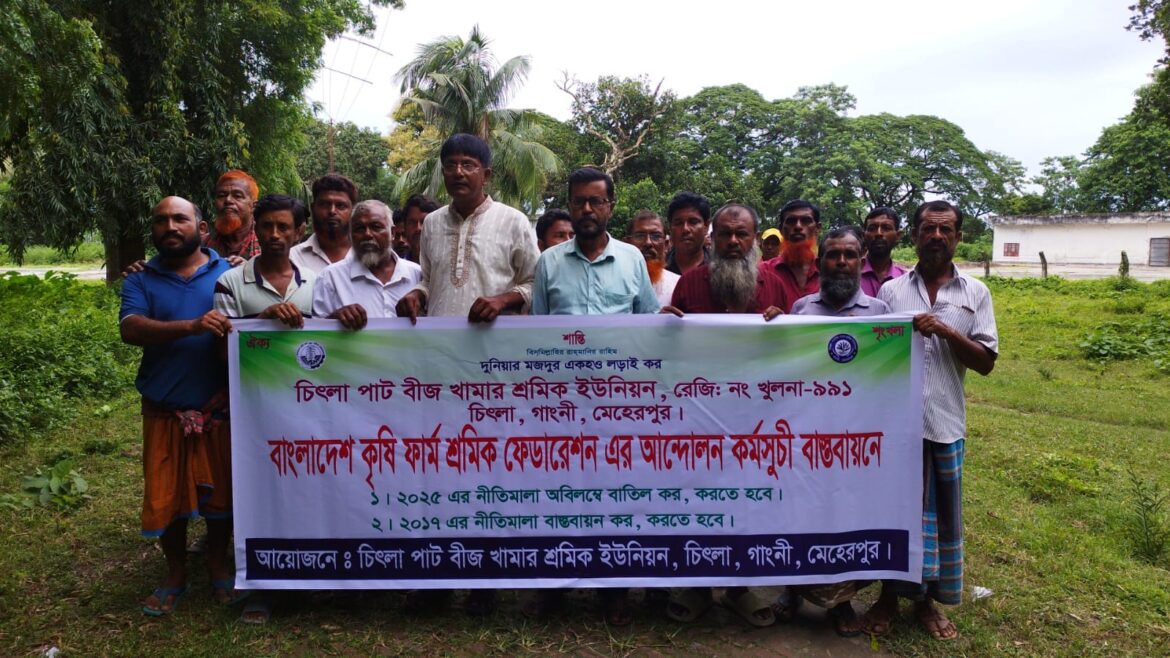 গাংনীতে পাটবীজ খামার শ্রমিকদের বিক্ষোভ ও স্মারকলিপি প্রদান