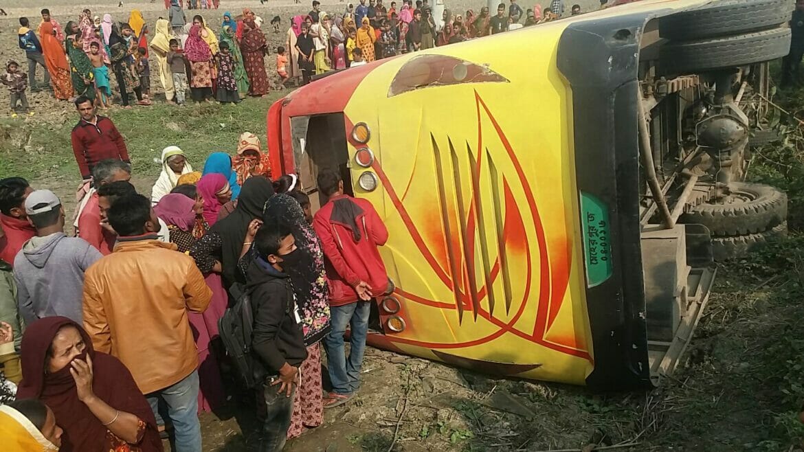 গাংনীতে পিকনিকের বাস উল্টে আহত অন্তত ৩০