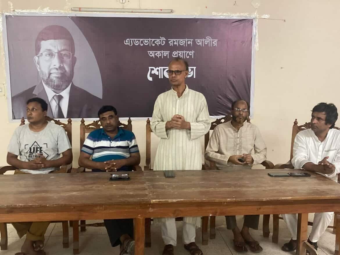 এম চোখ ডটকম: গাংনীতে প্রয়াত অ্যাডভোকেট রমজান আলী স্বরনে শোকসভা অনুষ্ঠিত হয়েছেন। শুক্রবার (৯ সেপ্টেম্বর) সন্ধ্যায় গাংনী মহিলা ডিগ্রি কলেজ শিক্ষক মিলনায়তনে সভা অনুষ্ঠিত হয়। সুরঙ্গন সাংস্কৃতিক একাডেমির আয়োজনে সাবেক উপজেলা চেয়ারম্যান ও জেলা আইনজীবী সমিতির সাবেক সভাপতি অ্যাডভোকেট একেএম শফিকুল আলমের সভাপতিত্বে বক্তব্য রাখেন মুজিবনগর সরকারি কলেজের প্রভাষক মুরাদ আলী, গাংনী প্রি- ক্যাডেট হাইস্কুলের অধ্যক্ষ জালাল আহম্মেদ, গাংনী প্রেসক্লাবের সাধারণ সম্পাদক মাহাবুব আলম, মেহেরপুর বিসিকের সুরঙ্গন সাংস্কৃতিক একাডেমির পরিচালক হামিদুল ইসলাম হিল্লোল, আব্দুল ওয়াদুদ, আব্দুল বারী, সাংবাদিক তৌহিদ-উদ দৌলা রেজা, সাংবাদিক রফিকুল আলম বকুল,প্রিক্যাডেট স্কুলের সাবেক শিক্ষক আসাদুজ্জামান, শিক্ষক আক্তারুজ্জামান, এনামুল হক সহ বিভিন্ন শ্রেণীপেশার মানুষ শোক সভায় বক্তব্য রাখেন। গত ১- লা সেপ্টেম্বর গাংনীর সকল শ্রেণি-পেশার মানুষের কাছে প্রিয় মানুষ অ্যাডভোকেট রমজান আলী হৃদরোগে আক্রান্ত হয়ে ইন্তেকাল করেন। শোকসভায় বক্তারা অ্যাডভোকেট রমজান আলীর কর্মময় জীবনের বিভিন্ন দিক সম্পর্কে আলোচনা করেন। সবাই অ্যাডভোকেট রমজান আলী কে একজন দক্ষ সংগঠক,ভাল মানুষ হিসেবে উল্লেখ করে বক্তারা গাংনীর প্রি ক্যাডেট স্কুল তৈরিতে তার অবদানের কথা উল্লেখ করেন।