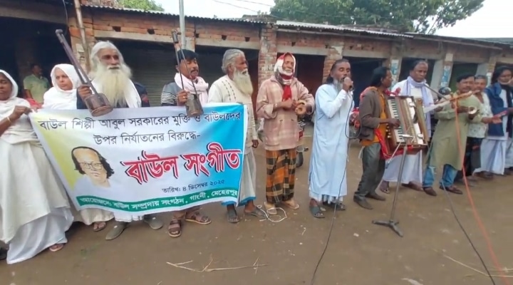 বাউল শিল্পি আবুল সরকারের মুক্তি দাবি এবং বাউলদের উপর নির্যাতনের প্রতিবাদে মেহেরপুরের গাংনীতে মানববন্ধন করেছে বাউল সম্প্রদায়। আজ বৃহস্পতিবার বিকেলে আয়োজিত এ মানববন্ধনে গানে গানে প্রতিবাদ প্রকাশ করেন লালন ভক্ত বাউল শিল্পিরা।