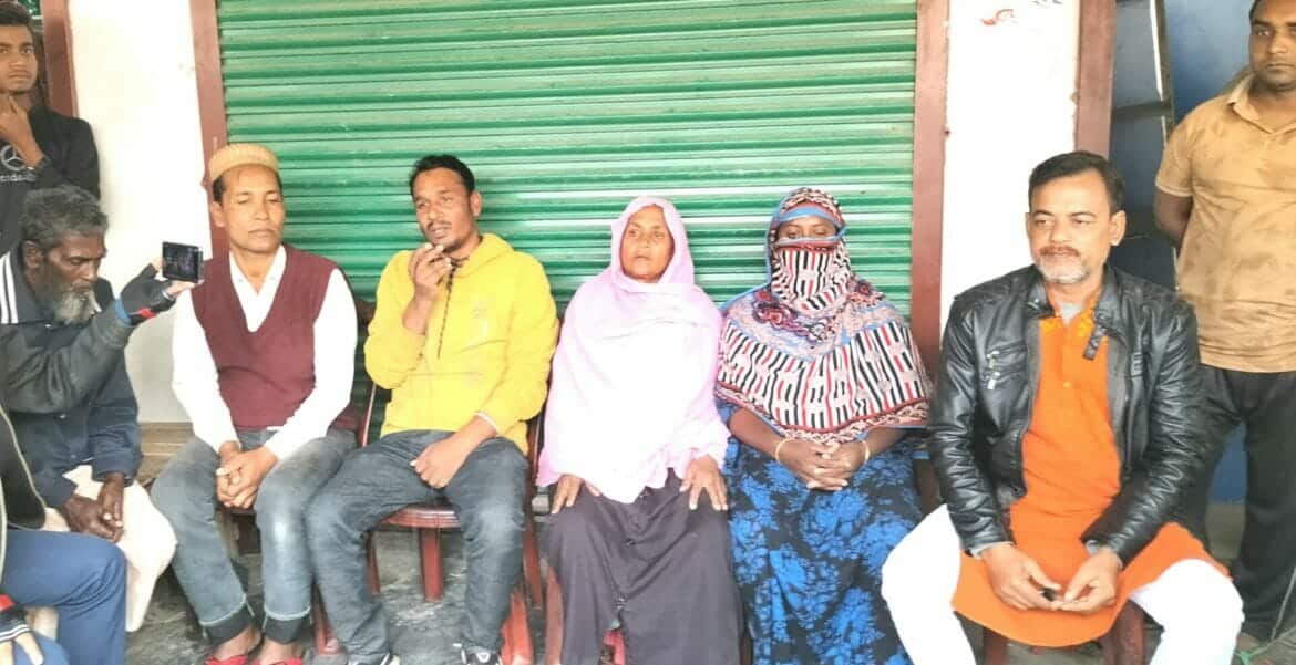 গ্রামে সংবাদ সম্মেলনে অভিযোগ তুলে ধরেন ভুক্তভোগী পরিবার।