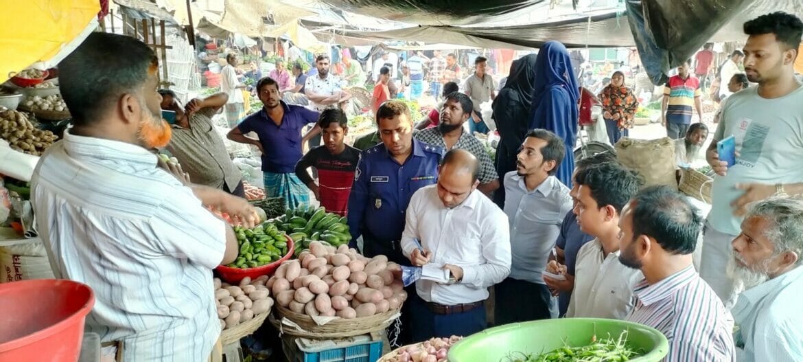 রমজানেও দ্রব্যমূল্য সহনীয় পর্যায়ে রাখাতে উপজেলা সহকারী কমিশনার (ভূমি) নাদির হোসেন শামীমের নেতৃত্বে বাজার কমিটির সভাপতি সালাউদ্দিন শাওন, গাংনী প্রেসক্লাব সভাপতি তৌহিদ উদ দৌলা রেজা, যুগ্ম সাধারণ সম্পাদক জুরাইস ইসলাম, গাংনী থানা পুলিশের উপপরিদর্শক মাসুদুর রহমানসহ পুলিশের একটি টীম। পরিদর্শনকালে মরিচ, পেঁয়াজ, সবজি, চাল, ডাল, চিনিসহ নিত্যপ্রয়োজনীয় পণ্যের মূল্য তালিকা, ক্রয়-বিক্রয় রসিদ পরিবীক্ষণ করা হয়। মূল্য তালিকা সঠিক না থাকায় শেখ ভান্ডারের সত্বাধীকারী রওশ কবি মন্টুকে ভোক্তা অধিকার আইনে দুই হাজার টাকা জরিমানা করা হয়। এসময় বাজার স্থিতিশীল রাখতে এই বাজার মনিটরিং ব্যবস্থা আরও জোরদার করা হবে বলে জানান নির্বাহী ম্যাজিস্ট্রেট নাদির হোসেন শামীম।