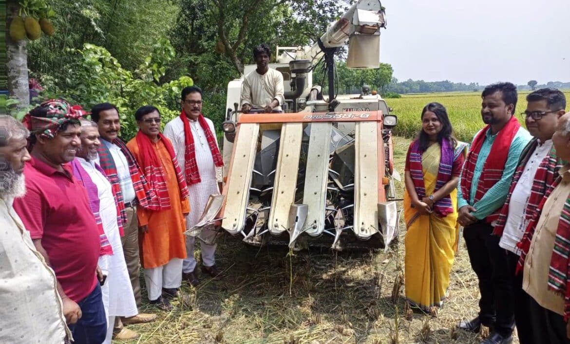 এম চোখ ডট কম, গাংনী: বোরো মৌসূমে ধান কাটা মাড়াই ঝুঁকিপূর্ণ। তাছাড়া দেশের নানাবিধ উন্নয়নের ফলে কমে যাচ্ছে কৃষি শ্রমিক। এ অবস্থায় কৃষিতে যান্ত্রিকরণ ছাড়া চাষাবাদ কঠিন হয়ে পড়ছে। এই সমস্যার সমাধানে কৃষি মন্ত্রণালয়ের উদ্যোগ সমলয় পদ্ধতিতে ধান আবাদ। একসঙ্গে একই জাতের ধান বীজ বপণ থেকে শুরু করে কাটা মাড়াই পর্যন্ত যন্ত্রের ব্যবহার করা যাচ্ছে। ফলে একদিকে যেমনি শ্রমিক খরচ সাশ্রয়ী তেমনি সময়মতো ধান ঘরে তুলতে পারছেন কৃষকরা। তাই ধান আবাদের উচ্চফলনশীল জাত নির্বাচন আর প্রযুক্তির ব্যবহার নিশ্চিত করতে পারলেই আবাদ ঝুঁকিমুক্ত হবে। আজ সোমবার (২৯ মে) দুপুরে মেহেরপুরের গাংনীর গোপালনগরে শস্য কর্তন ও কৃষক সমাবেশে বক্তারা উপরোক্ত কথাগুলো বলেন। বক্তারা আরও বলেন, বর্তমান সরকার কৃষিতে ব্যাপকভাবে ভর্তুকি দিয়ে যাচ্ছে। বিনামূল্যে সার ও বীজ প্রদানের পাশাপাশি প্রযুক্তিগত বিষয় চাষীদের মাঝে ছড়িয়ে দিচ্ছে কৃষি বিভাগ। চাষাবাদের বিষয়ে তাই কৃষি বিভাগের পরামর্শ নিতে চাষীদের প্রতি আহবান জানান বক্তারা। কৃষি প্রণোদনা কর্মসূচির আওতায় কম্বাইন্ড হারভেস্টারের মাধ্যমে বোরো ধানের সমলয় ব্লক প্রদর্শনীর ধান কাটা মাড়াই উপলক্ষে এ কৃষক সমাবেশের আয়োজন করে গাংনী উপজেলা কৃষি অফিস। অনুষ্ঠানে প্রধান অতিথি হিসেবে বক্তৃতা করেন মেহেরপুর ২ আসনের সংসদ সদস্য মোহাম্মদ সাহিদুজ্জামান খোকন। উপজেলা নির্বাহী অফিসার সাদিয়া সিদ্দিকা সেতুর সভাপতিত্বে বিশেষ অতিথি হিসেবে বক্তৃতা করেন গাংনী উপজেলা পরিষদ চেয়ারম্যান এমএ খালেক। স্বাগত বক্তব্যে সমলয় চাষের সুবিধা ও দেশের কৃষির সার্বিক অবস্থা তুলে ধরেন উপজেলা কৃষি অফিসার ইমরান হোসেন। অনুষ্ঠানে অন্যান্যদের মধ্যে আরও বক্তব্য রাখেন আওয়ামী লীগ নেতা মনিরুজ্জামান আতু, রাইপুর ইউনিয়ন আওয়ামী লীগ সভাপতি সামসুজ্জামান মঙ্গল, আওয়ামী লীগ নেতা শহিদুল ইসলাম, ইউপি সদস্য আজাদসহ স্থানীয় কৃষকবৃন্দ। অনুষ্ঠান সঞ্চালনায় ছিলেন কৃষি সম্প্রসারণ কর্মকর্তা আব্দুর রউফ। কৃষক সমাবেশের পর সময়লয় পদ্ধতিতে আবাদকৃত ধান যন্ত্র দিয়ে কাটামাড়াই করা হয়। অনুষ্ঠানের অতিথিবৃন্দ ও কৃষকরা কম্বাইন্ড হারভেস্টর দিয়ে ধান কাটা মাড়াই কার্যক্রম পরিদর্শন করেন।