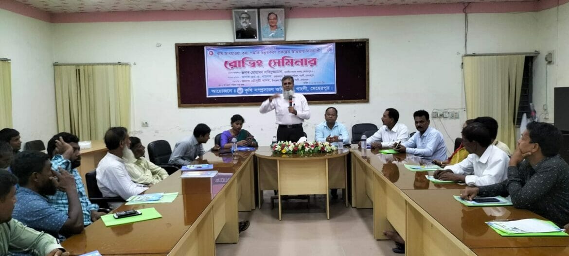 কৃষি আবহাওয়া তথ্য পদ্ধতি উন্নতকরণ প্রকল্পের আওতায় গাংনীতে রোভিং সেমিনার অনুষ্ঠিত হয়েছে। বুধবার সকালে গাংনী উপজেলা পরিষদ হলরুমে অনুষ্ঠিত এ সেমিনারে প্রধান অতিথী ছিলেন মেহেরপুর কৃষি সম্প্রসারণ অধিদপ্তরের উপ পরিচালক(অতিঃ) সামসুল আলম।