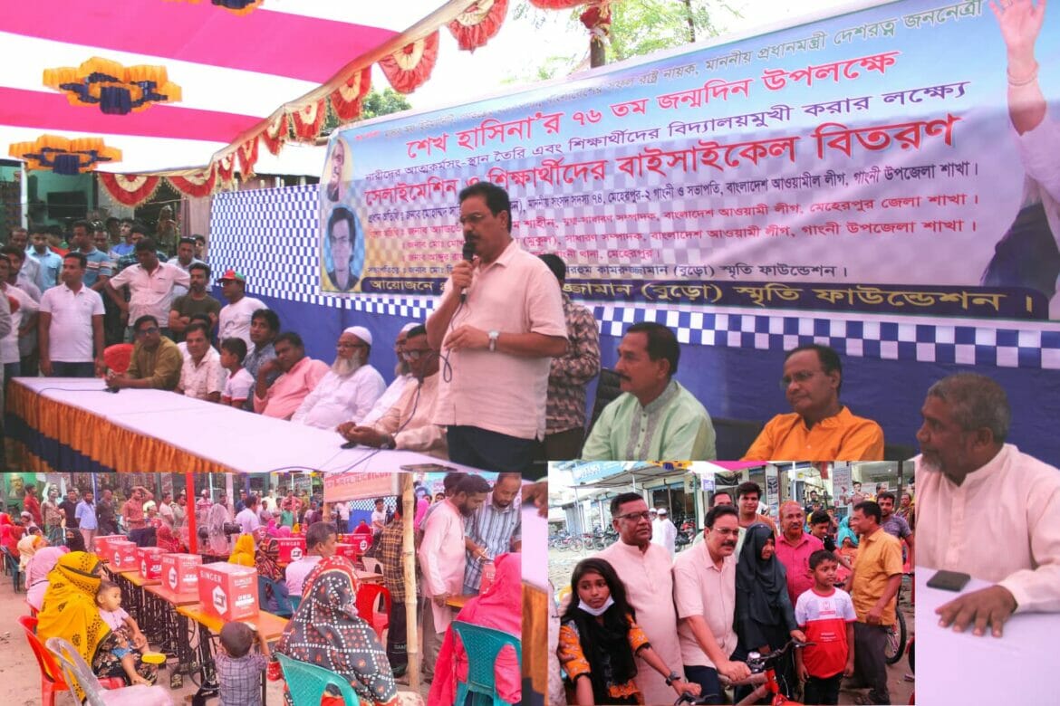গাংনীতে শেখ হাসিনার জন্মদিন উপলক্ষ্যে সেলাইমেশিন ও বাইসাইকেল বিতরণ