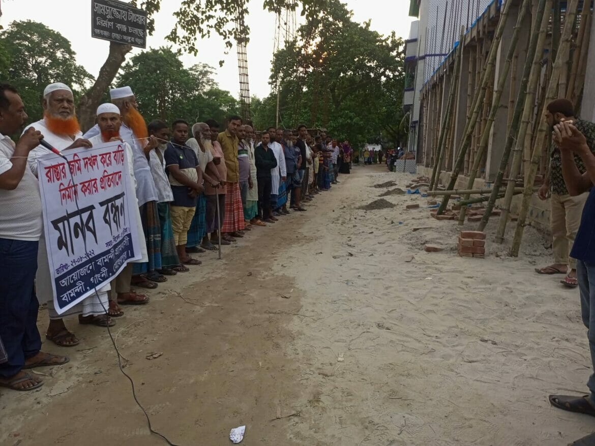 মানব বন্ধনে ফারুক মাস্টারের সভাপতিত্বে বক্তব্য রাখেন, ইছার উদ্দীন, আশরাফুজ্জামান বাবু, আব্দুল আলিম, বীর মুক্তিযোদ্ধা মোফাজ্জেল হক। উপস্থিত ছিলেন বেনজির হোসেন, হুমায়ন কবির, সেরেগুল হক, পাঞ্জাব আলী, খবির উদ্দীন, ইউপি সদস্য কামাল হোসেন, আব্দুস সালাম, রোকনুজ্জামান, নাছিম, ওবাইদুল হক, লিটন হোসেন, তরিকুল ইসলাম, মোঃ মঞ্জু ও হাজী হাফেজসহ এলাকার বিভিন্ন শ্রেণির নারী পুরষ।