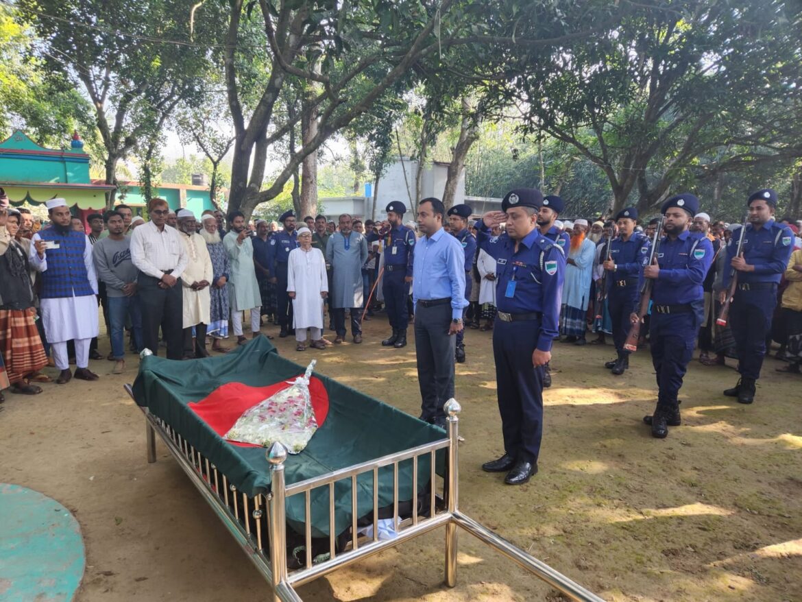গতকাল বুধবার সকালে এই বীরের শেষ বিদায় দেওয়া হয় রাষ্ট্রীয়ভাবে। তার মরদেহের উপরে স্বাধীন বাংলার পতাকা দিয়ে আবৃত করা হয়। এসময় ফুল দিয়ে চীর বিদায় জানানো হয়। রাষ্ট্রের পক্ষে গার্ড অব অনারের নেতৃত্ব দেন গাংনী উপজেলা নির্বাহী কর্মকর্তা প্রীতম সাহা। এসময় গাংনী থানার অফিসার ইনচার্জ (ওসি) বানি ইসরাইলের নেতৃত্বে পুলিশের একটি চৌকস দল গার্ড অব অনার প্রদান করেন। এসময় বেজে উঠে বিহŸগলের করুণ সুর। শেষ বিদায় অনুষ্ঠানে সহযোদ্ধা বীর মুক্তিযোদ্ধাদের পক্ষে নেতৃত্ব দেন গাংনী উপজেলা মুক্তিযোদ্ধা কমান্ডের সাবেক কমান্ডর বীর মুক্তিযোদ্ধা শাসমুল আলম সোনা। আরও উপস্থিত ছিলেন বীর মুক্তিযোদ্ধা গোলাম মোস্তফা, সোহরাব, আব্দুর রহমান, সাইফুল ইসলামসহ এলাকার বিভিন্ন প্রেণি পেশার মানুষ।