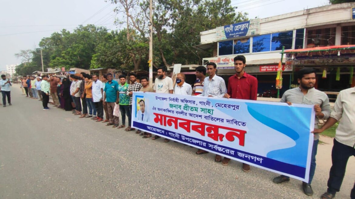 গাংনী উপজেলা নির্বাহী কর্মকর্তার বদলি আদেশ বাতিলের দাবিতে মানববন্ধন