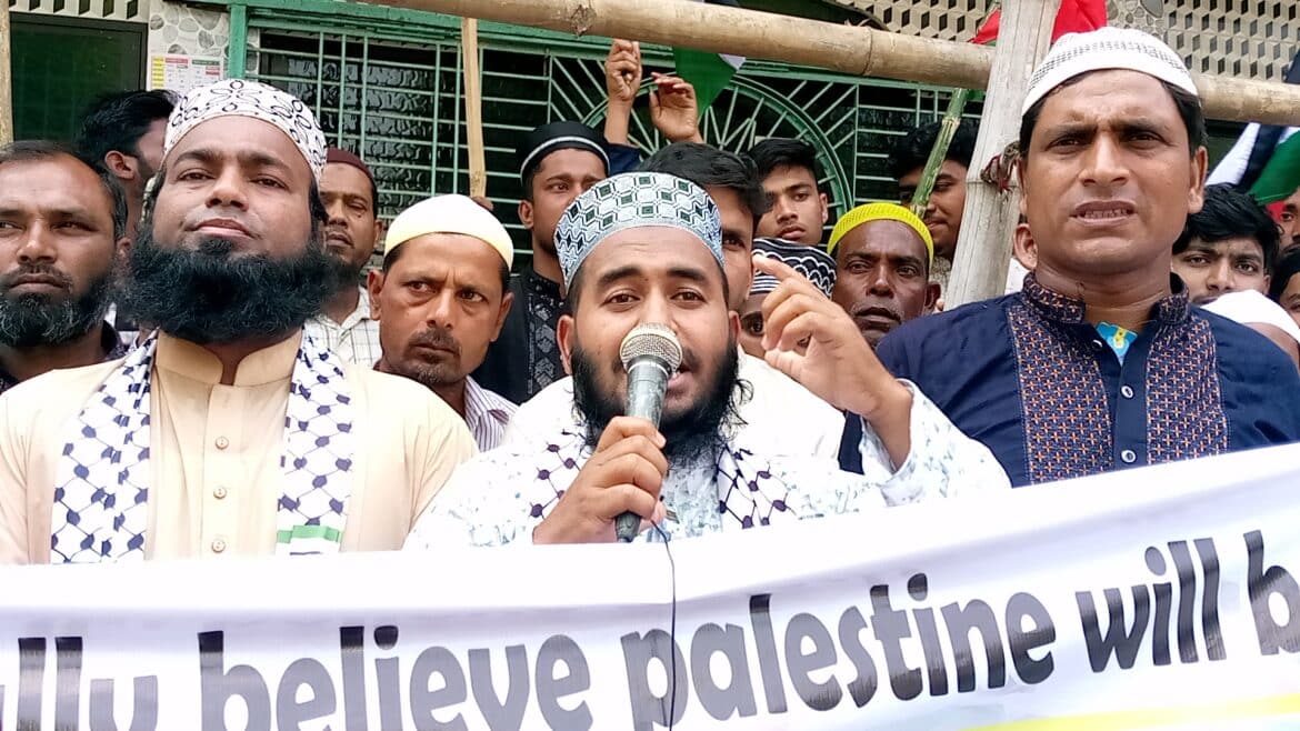 ফিলিস্তিনীদের উপর ইসরায়েলী বর্বর হামলার প্রতিবাদে গাংনী আড়পাড়াতে বিক্ষোভ মিছিল ।