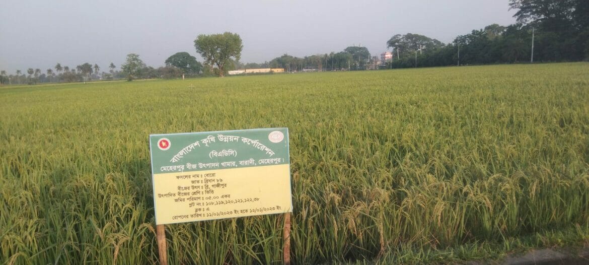 এম চোখ ডটকম,বারাদী: মেহেরপুর সদরের বারাদীতে গত কয়েক দিনের তীব্র তাপদাহে ব্যাহত হচ্ছে বোরো চাষ কার্যক্রম। অত্র অঞ্চলের কিছু কিছু এলাকায় রোপন কার্যক্রম সম্পন্ন হলেও ফেটে যাচ্ছে ফসলের মাঠ। প্রখর রোদে ফেটে চৌচির হয়ে যাচ্ছে কৃষকের স্বপ্ন। এতে দিশেহারা হয়ে পড়ছে কৃষক। বারাদি অঞ্চলে বেশিরভাগ মানুষ কৃষির উপর নির্ভরশীল। ফসলের মাঠের পরিস্থিতি দেখে হতাশায় ভেঙে পড়েছেন সাধারণ কৃষক। বোরো ধান রোপন কার্যক্রম কিছুটা বৃষ্টির উপর নির্ভরশীল। কিন্তু গত এক মাসের বেশি সময় ধরে বৃষ্টিপাত হচ্ছে না। তীব্র তাপদাহে বোরো রোপনের জন্য প্রতিকূল পরিবেশের সৃষ্টি হয়েছে। কোথাও কোথাও বোরো ধান রোপণ করা গেলেও ফসল নষ্ট হওয়ার আশঙ্কা করা হচ্ছে। দীর্ঘ সময় ধরে প্রচন্ড তাপদাহ খরা অব্যাহত থাকায় উঁচু জমিসহ উচু নিচু জমি গুলোর পানি শুকিয়ে জমি ফেটে যাচ্ছে। এতে বোরো ধান রোপন করে চরম বিপাকে পড়েছে কৃষকরা। অত্র অঞ্চলের বিভিন্ন জায়গায় সরেজমিনে ঘুরে দেখা যায়, এক মাস পূর্বে যেসব জমিতে পানি ছিল সেসব জমিতেও এখন পানির অভাবে ফাটল দেখা দিয়েছে। কয়েকদিনের প্রখর রোদে মাটি শুকিয়ে ফেটে গেছে। রোপনকৃত ধানের গাছ গুলো পানির অভাবে বিবর্ণ হয়ে মারে যাচ্ছে। এমন খরার কারণে সেচ পাম্পের উপর নির্ভর করতে হচ্ছে কৃষকদের। জ্বালানি তেলের মূল্যবৃদ্ধি পাওয়াই বাড়বে ধানের উৎপাদন ব্যয়। এ ব্যাপারে মেহেরপুর বীজ উৎপাদন খামার বিএডিসি বারাদী খামারের উপ-পরিচালক কৃষিবিদ কেএম মনিরুজ্জামান বলেন, চলতি মৌসুমে অত্র খামারে বিভিন্ন জাতের বোরো ধান বীজ ফসল ১১৯ একর, বোরো হাইব্রিড ধান বীজ ফসল ৯৯ একর ও হাইব্রিড ভুট্টা ৫ একর সর্বমোট ২২৩ একর ফসল মাঠের দন্ডায়মান। ফসলের অবস্থা খুব ভালো। আবহাওয়া অনুকূলে থাকলে কাঙ্খিত মাত্রায় ফলন অর্জিত হবে বলে আশা করা যায়। বর্তমানে খামার এলাকা সহ আশেপাশের এলাকায় তীব্র তাপদাহ বিরাজ করছে। প্রতিনিয়ত সেচ দেয়ার পরেও মাটি শুকিয়ে যাচ্ছে। মাঠের দণ্ডায়মান বোরো ধান বীজ ফসল বর্তমানে পরাগায়ন পর্যায়ে থাকায় পানির অভাবে পরাগায়ন ব্যাহত হচ্ছে। তিনি আরো জানান, প্রচন্ড তাপদাহের কারণে অতিরিক্ত কয়েকটি স্যালো টিউবয়েল স্থাপন করে নিয়মিত সেচ কার্যক্রম চলমান রাখার ব্যবস্থা করা হয়েছে। তারপরও দিন দিন তাপমাত্রা বৃদ্ধি পাওয়ায় ধান ক্ষেতের মাঠে পানি রাখা সম্ভব হচ্ছে না। এমতাবস্থায় পরাগায়ণ ব্যাহত হচ্ছে এবং পোকামাকড়ের আক্রমণ বেশি হচ্ছে ফলে ফলন কিছুটা কম হওয়ার আশঙ্কা করা হচ্ছে। আবহাওয়া অনুকূলে থাকলে বোরো ফসলে শতভাগ লক্ষ্যমাত্রা পূরণ হবে বলে তিনি আশাবাদ ব্যক্ত করেন। বর্তমান উপ-পরিচালকের নেতৃত্বে খামারটি লাভজনক অবস্থায় আছে বলে তিনি জানান।