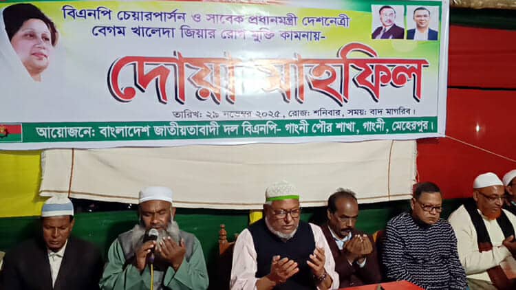 বিএনপি চেয়ারপার্সন বেগম খালেদা জিয়ার রোগ মুক্তি কামনায় গাংনীতে দোয়া মাহফিল