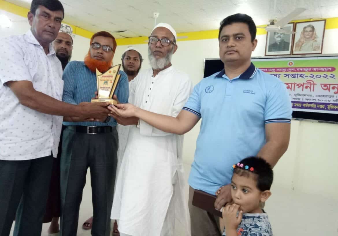 এম চোখ ডটকম, মুজিবনগর : মেহেরপুরের মুজিবনগর উপজেলা প্রশাসন ও সিনিয়র মৎস্য অধিদপ্তরের উদ্যোগে জাতীয় মৎস্য সপ্তাহ -২০২২’র মূল্যায়ন ও সমাপনী অনুষ্ঠান অনুষ্ঠিত হয়েছে। আজ শুক্রবার সকাল ১০টায় মুজিবনগর উপজেলা অডিটরিয়াম হল রুমে মূল্যায়ন ও সমাপনী অনুষ্ঠান অনুষ্ঠিত হয়। মুজিবনগর উপজেলা সিনিয়র মৎস্য অফিসার শহিদুল ইসলামের সভাপতিত্বে প্রধান অতিথি ছিলেন উপজেলা ভাইস চেয়ারম্যান আলহাজ রফিকুল ইসলাম মোল্লা। উপস্থিত ছিলেন ও বক্তব্য রাখেন উপজেলা সমাজ সেবা অফিসার আব্দুর রব, মৎস্য খামারী আব্দুস সামাদ, শহিদুল ইসলাম প্রমূখ।