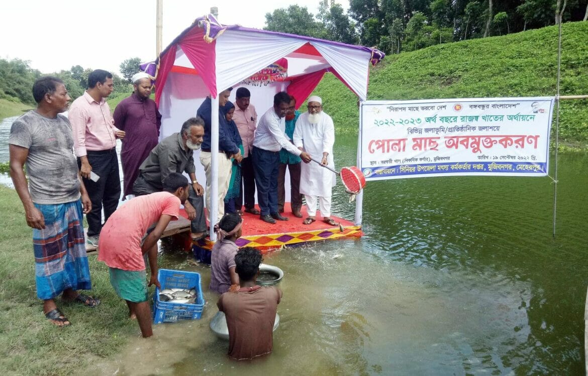 এম চোখ ডটকম,মুজিবনগর:: মুজিবনগরে মাছের পোনা অবমুক্ত করা হয়েছে। আজ সোমবার (১৯সোপ্টম্বর) মিশন পুকুর, স্বরসবতি খাল ও ভৈরব নদীতে উপজেলা সিনিয়র মৎস্য অধিদপ্তরের উদ্যেগে জাতীয় মৎস্য সপ্তাহের কর্মসূচি হিসেবে এ কর্মসূচি পালন করা হয়। এতে প্রধান অতিথি হিসেবে উপস্থিত ছিলেন উপজেলা চেয়ারম্যান জিয়াউদ্দীন বিশ্বাস। আরও উপস্থিত ছিলেন জেলা মৎস্য অফিসার রোকনুজ্জামান, উপজেলা সিনিয়র মৎস্য কর্মকর্তা শহিদুল ইসলাম, উপজেলা সমাজসেবা অফিসার আব্দুর রব। মুজিবনর প্রেস ক্লাবের সাধারন সম্পাদক শফিউদ্দীন।