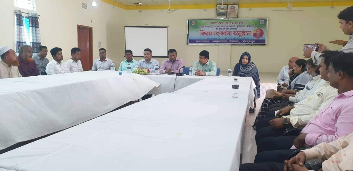 মুজিবনগর উপজেলা সমাজসেবা অফিসের ইউনিয়ন সমাজকর্মী মোঃ গোলাম ফারুককে (অবসরজনিত) বিদায় সংবর্ধনা দেয়া হয়েছে। গতকাল সোমবার দুপুরের দিকে উপজেলা অডিটরিয়াম হল রুমে বিদায় সংবর্ধনা দেয়া হয়। বিদায় সংবর্ধনা অনুষ্ঠানে উপজেলা সমাজসেবা অফিসের পক্ষ থেকে বিদায়ী উপজেলা সমাজসেবা অফিসের ইউনিয়ন সমাজকর্মী মোঃ গোলাম ফারুককে ফুলেল শুভেচ্ছা জানানো হয়। বিদায়ী অনুষ্ঠানে উপজেলা নির্বাহী অফিসার সুজন সরকার, উপপরিচালক জেলা সমাজসেবা (ভারপ্রাপ্ত) কাজী কাদের মোহাম্মদ রাব্বি, মুজিবনগর উপজেলা সমাজসেবা অফিসার আব্দুর রবসহ উপজেলা ও জেলা সমাজসেবা অফিসের সকল পর্যায়ের কর্মকর্ত/কর্মচারী প্রমূখ এসময় উপস্হিত ছিলেন।