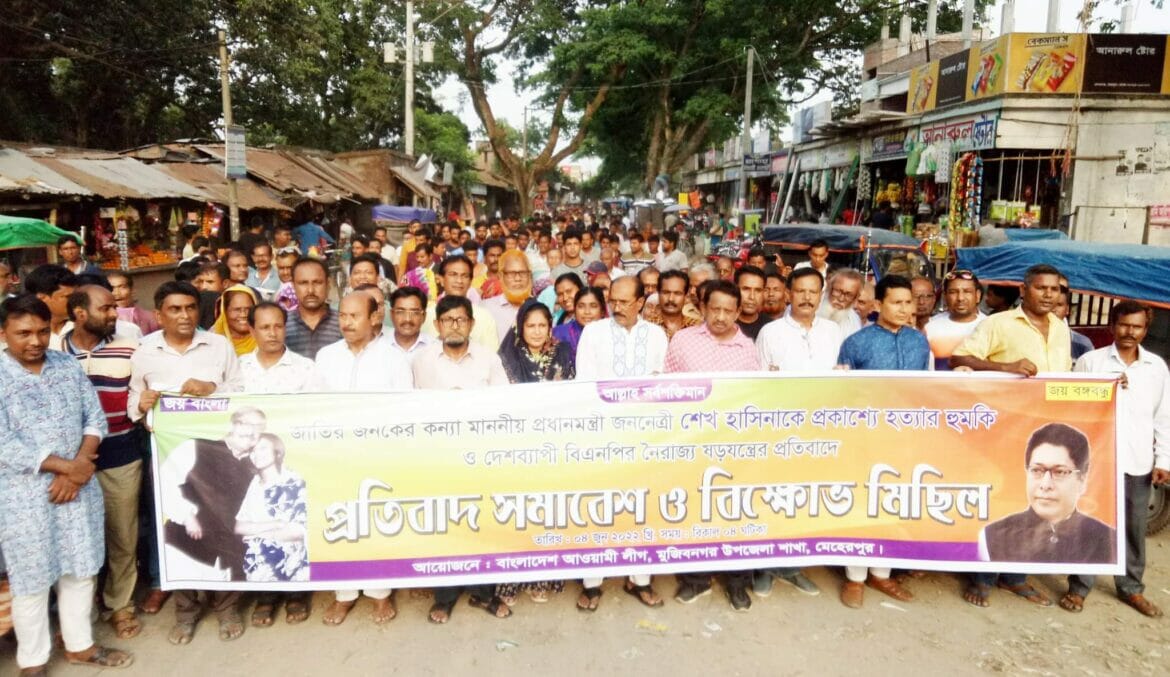 মুজিবনগর উপজেলা আওয়ামী লীগের প্রতিবাদ সমাবেশ ও বিক্ষোভ মিছিল