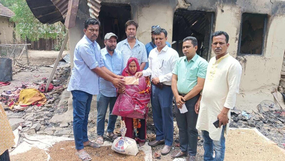 মুজিবনগর দারিয়াপুরে অগ্নিকাণ্ডে ক্ষতিগ্রস্ত প্রতিবন্ধীর পাশে দাঁড়ালেন উপজেলা প্রশাসন
