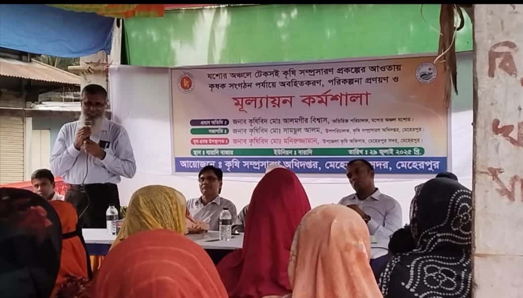 মেহেরপুরের বারাদী ইউনিয়নে যশোর অঞ্চলে টেকসই কৃষি সম্প্রসারণ প্রকল্পের আওতায় কৃষক সংগঠন পর্যায়ে অবহিতকরণ, পরিকল্পনা প্রণয়ন ও মূল্যায়ন কর্মশালা অনুষ্ঠিত হয়েছে।