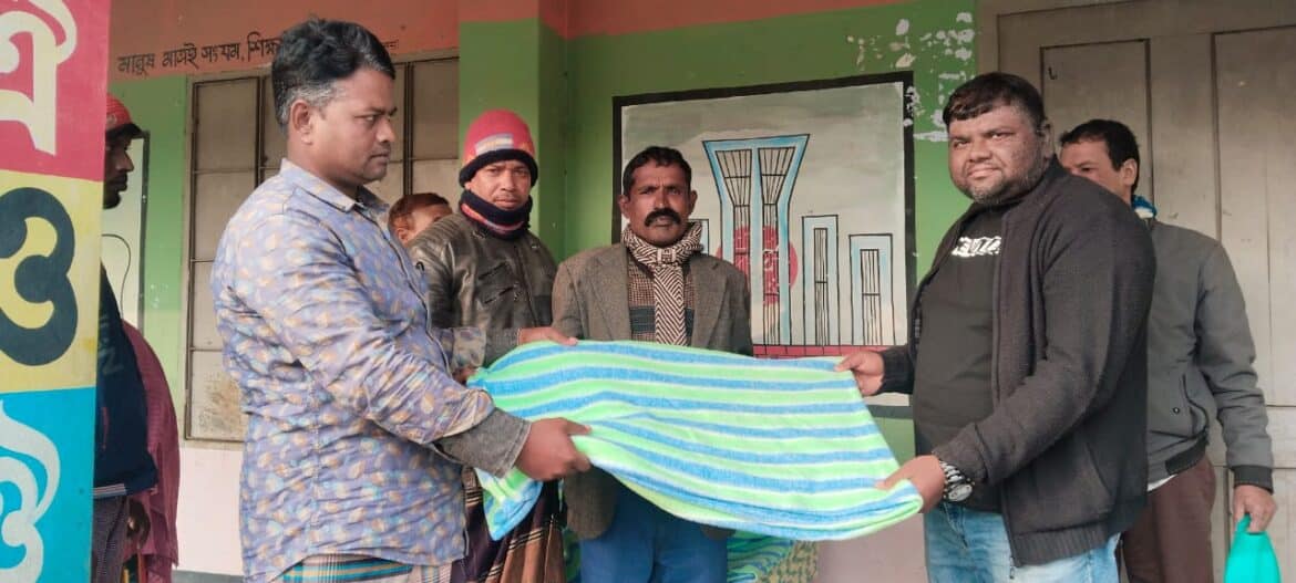 মেহেরপুরের মোমিনপুর গ্রামে সমাজসেবক হাসিবুল হাসান বাবু খান এর পক্ষ থেকে শীতার্তদের মাঝে কম্বল বিতরণ।