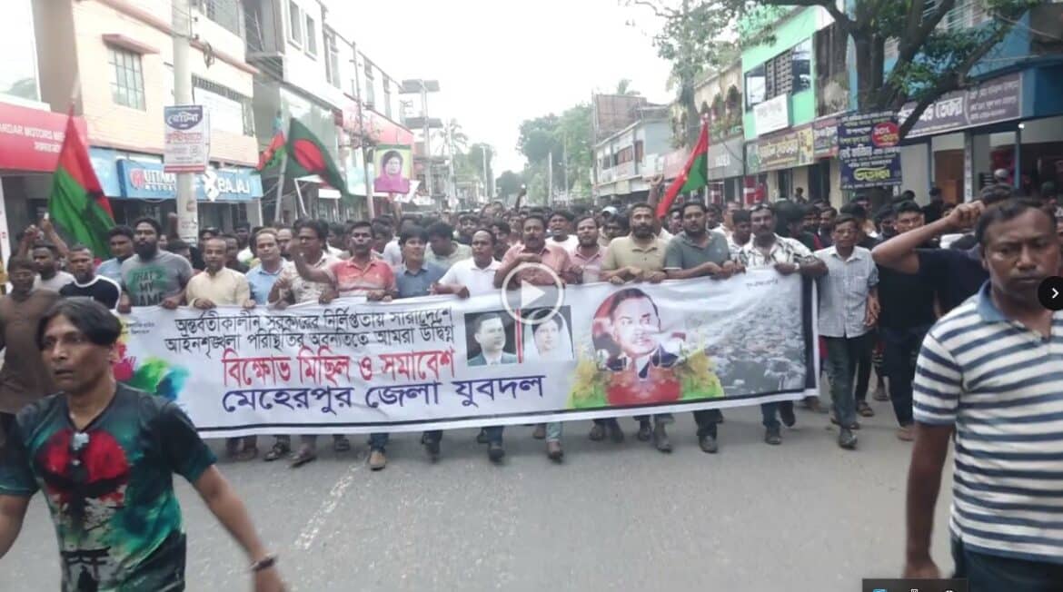 মেহেরপুরে যুবদলের বিক্ষোভ মিছিল ও সমাবেশ