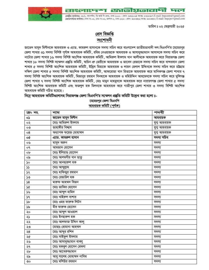 মেহেরপুর জেলা বিএনপির পূর্ণাঙ্গ আহবায়ক কমিটি