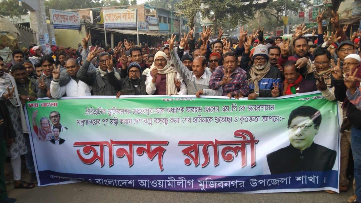 মেহেরপুর ১ আসনের সংসদ ফরহাদ হোসেনকে পূর্ণমন্ত্রী করায় মুজিবনগর আনন্দ র্যালি