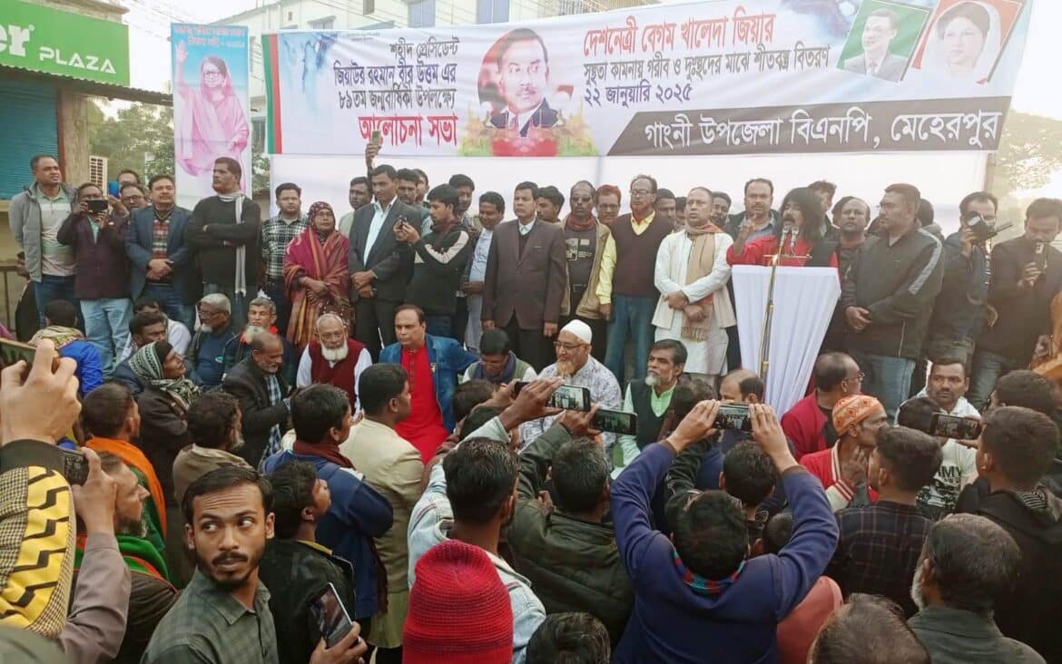 বুধবার বিকেলে গাংনী হাসপাতাল বাজারে বিএনপি কার্যালয়ের সামনে আয়োজিত জনসভায় প্রধান অতিথির বক্তৃতায় তিনি উপরোক্ত কথাগুলো বলেন। বিএনপির প্রতিষ্ঠাতা শহীদ প্রেসিডেন্ট জিয়াউর রহমানের ৮৯ তম জন্মদিন পালনে এ অনুষ্ঠানের আয়োজন করে বিএনপি।