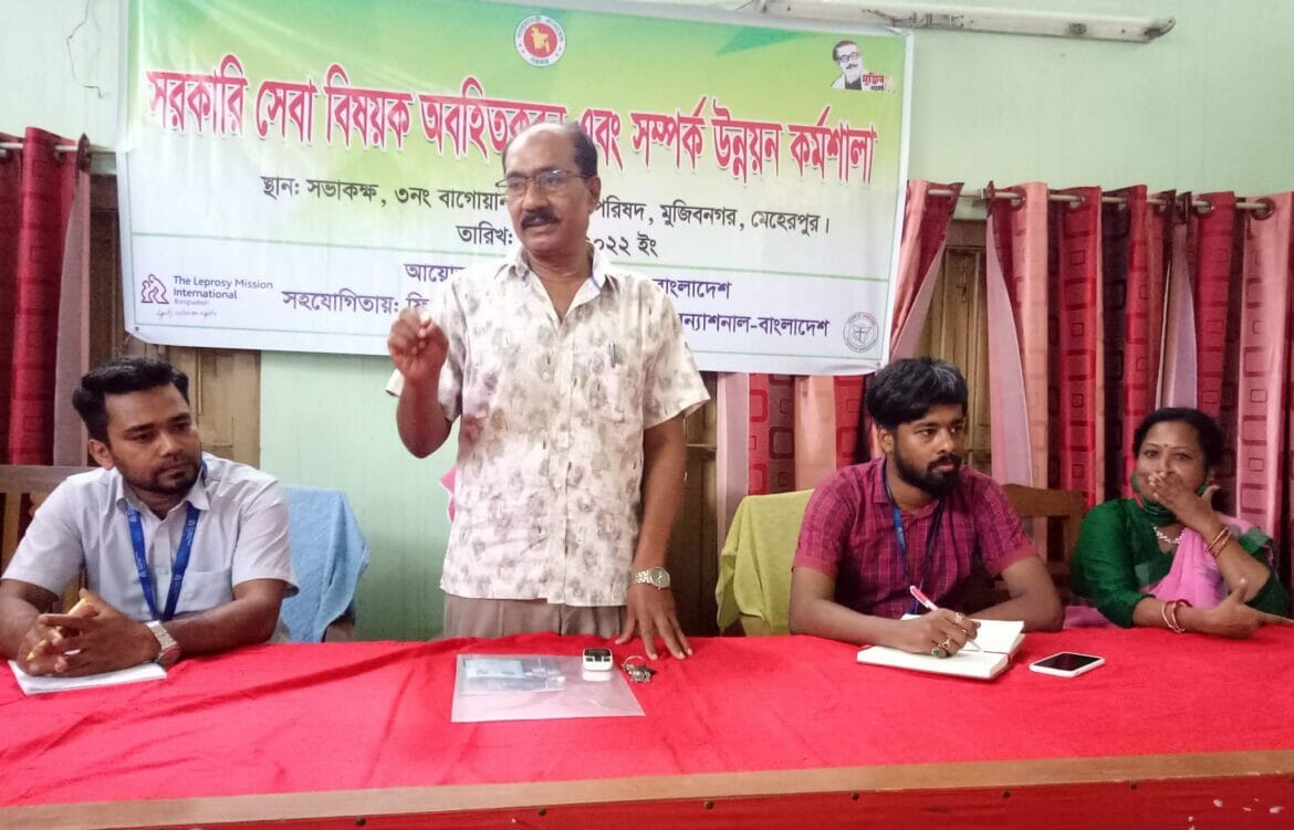 সলোমন, চার্চ অব বাংলাদেশের আয়াজনে ও ফ্রি প্রকল্প, দি লেপ্রসি মিশন ইন্টারন্যানাল বাংলাদেশ এর সহযোগীতায় সরকারি সেবা বিষয়ক অবহিতকরন এবং সম্পর্ক উন্নয়ন কর্মশালা অনুষ্ঠিত হয়েছে। আজ বুধবার সকাল ১০টায় মুজিবনগরের বাগোয়ান ইউনিয়ন পরিষোদ সম্মেলন কক্ষ ওই অবহিতকরন কর্মশালা অনুষ্ঠিত হয়। মেহেরপুর জেলা “সলোমন‘এর এ.ই.পি কো-অডিনেটর মিসেস সন্ধ্যা মন্ডলের সভাপতিত্বে সরকারী সেবা বিষয়ক অবহিতকরন এবং সম্পর্ক উন্নয়ন কর্মশালা অনুষ্ঠানে প্রধান অতিথি হিসেবে উপস্থিত ছিলেন বাগোয়ান ইউনিয়ন পরিণদের চেয়ারম্যান আয়ূব হোসেন। কর্মশালায় অতিথি হিসেবে বক্তব্য রাখেন দি লেপ্রসি মিশন ইন্টারন্যানাল বাংলাদেশ এর প্রকল্প কর্মকর্তা সুজিত মৌলিক ও গবেষনা কর্মকর্তা মুশফিক রহমান। কর্মশালা অনুষ্ঠানে ইউপি সদস্য, সাংবাদিক, স্বাস্থ্য কর্মী, ভূমি অফিসের প্রতিনিধি ও বাগোয়ান আদর্শ কুষ্ট ও প্রতিবন্দী উন্নয়ন ফেডারেশনের সদস্যসহ ৩০ অংশগ্রহণ করেন প্রমূখ।