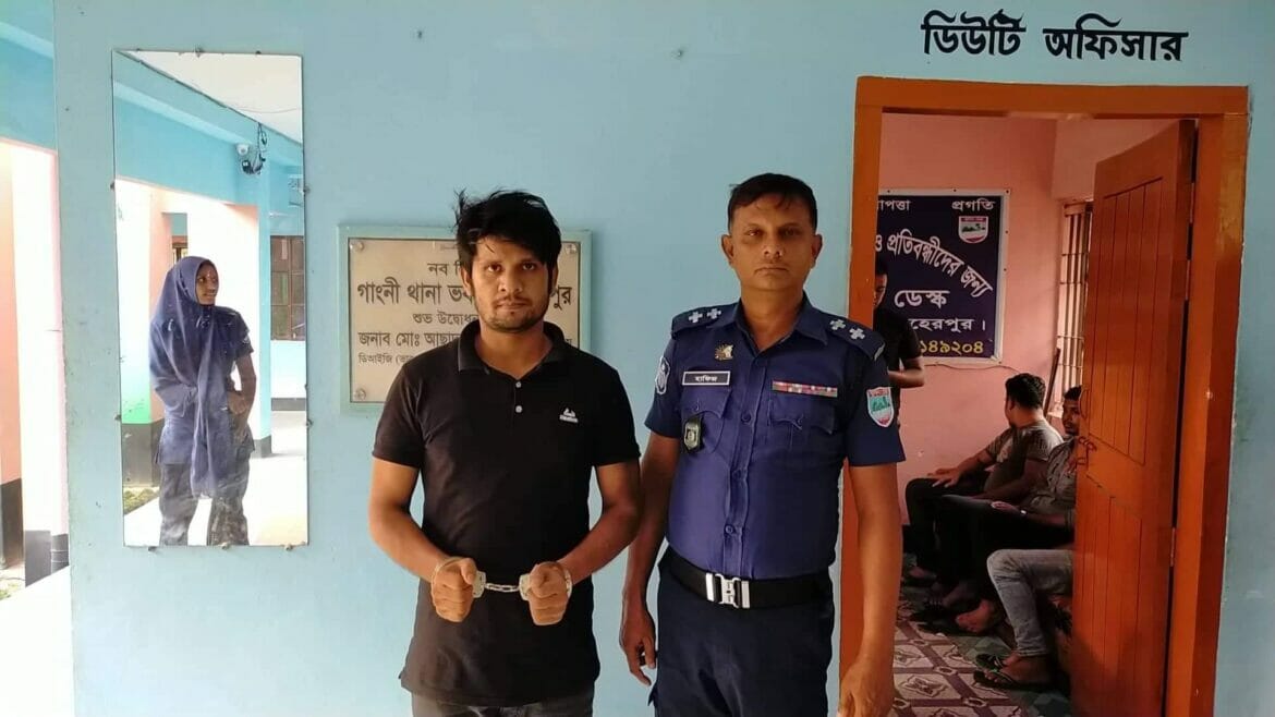 গ্রেফতার উপহার মিয়া গাংনী উপজেলার সাহারবাটি গ্রামের ক্লাবপাড়ার হকাজ্জেল হোসেনের ছেলে।