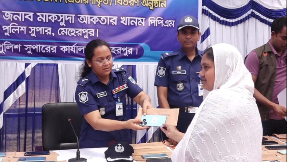 এম চোখ ডটকম,মেহেরপুর : বিভিন্ন সময়ে হারিয়ে যাওয়া মোবাইল কিংবা প্রতারণায় খোয়া যাওয়া টাকা সাথে একটি শুভেচ্ছা পত্র, হাসি ফুটিয়েছে অভিযোগকারীদের। মেহেরপুর জেলার তিন থানায় দায়েরকৃত জিডির ভিত্তিতে ১০৭ টি মোবাইল ও ৬ লক্ষ ৭ হাজার টাকা প্রকৃত স্বত্বাধিকারীকে ফেরত দিল পুলিশ প্রশাসন। গেল দুই মাসে এ সকল হারিয়ে যাওয়া মোবাইল ফোন ও মোবাইল ব্যাংকিং এর মাধ্যমে প্রতারণায় হাতিয়ে নেয়া অর্থ পুনরুদ্ধার করেছে সাইবার ক্রাইম ইনভেস্টিগেশন সেল। পুলিশের তথ্য মতে মেহেরপুর সদর থানায় ৬১টি টি গাংনী থানায় ১৬ টি এবং মুজিবনগরে ৩০ মোবাইল ফোন উদ্ধার করা হয়েছে। এছাড়াও সদর থানায় দায়েরকৃত সাধারণ ডায়েরির বিপরীতে ৬ লক্ষ ৭ হাজার টাকা পুনরুদ্ধার করা সম্ভব হয়েছে। স্বল্প সময়ে নিজেদের ফোন ফেরত পেয়ে খুশি অভিযোগকারীরা। আইনের প্রতি আস্থা রাখার জন্য পরামর্শ দিচ্ছেন তারা।