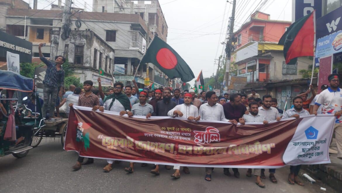 ৫ই আগস্ট গণ-অভ্যুত্থানের ১ম বর্ষপূর্তি উপলক্ষে- ❝জুলাই জাগরণ নবউদ্যমে বিনির্মাণ❞ র্যালি আয়োজন করে বাংলাদেশ ইসলামী ছাত্রশিবির, মেহেরপুর জেলা শাখা।
